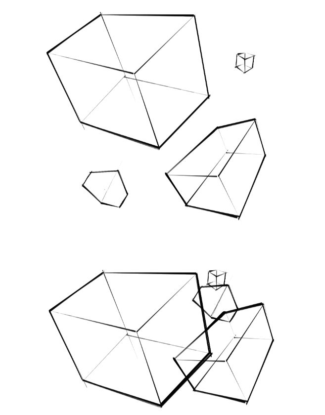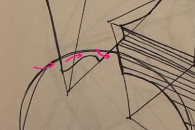 Off the jump, I'm seeing you show a solid grasp of how forms behave in space in relation to other forms. For the most part your intersections are clean and well-informed (not to mention your excellent draftsmanship).