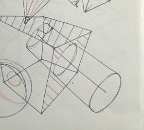 I did some experimentation with hatching to better understand overlaps. I didn't like the hatching on the spheres and took it out for follow pages.