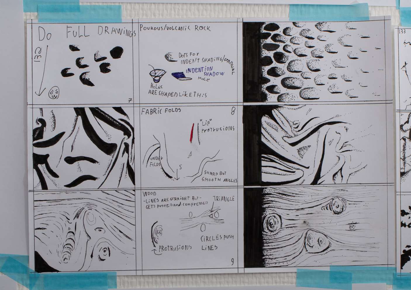 Congratulations on completing the texture challenge! Looking over your work as a whole, I can definitely see a lot of growth and development of your understanding of the spatial relationships between the different forms and surfaces that make up each texture, and how they can be used to control the nature of the detail we use in our illustrations - specifically being able to control where our detail is at its densest (a lot of contrast packed into a small area, which creates a focal point and draws the eye), so that we are able to dictate how the viewer experiences a given drawing.