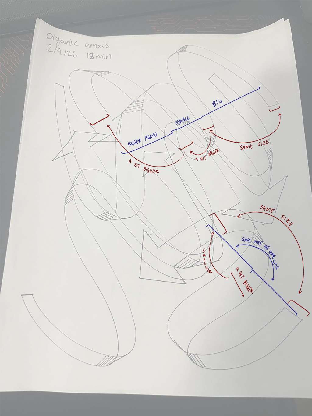 OK. I re read what you said here a few times and re watched the arrow video. I guess I do have something thats not clicking for me. I think this is my best attempt as I exaggerated a lot. But I have a question. Is it all in the initial line? Because at least how I understand it now if we start small that area in between will be larger by default? Because like you said sometimes I get it and sometimes I don't. But I do not understand what I am doing to replicate the correct ones. However I do think this page is a lot better. Thanks for helping.