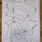 • Starting off in the arrows section your lines are looking smoothly and confidently drawn. There are spots where your arrows bulge/narrow suddenly, this is an issue because it gives the impression that your arrows are stretching which hurts their solidity. Remember that as our arrows move closer to the viewer we want them to widen consistently. It's good to see that you're trying to implement line weight, just remember that you want to keep your applications subtle and you'll become consistent with mileage. here are some things to look out for when applying it. I'd like you to experiment more with foreshortening in your future attempts, by utilizing it in both the arrows themselves as well as the negative space between their curves we can create a stronger illusion of an object moving through 3D space as demonstrated here.
