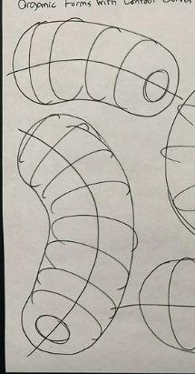 Looking at your sausage forms with contour lines, you've done a great job of sticking to the characteristics of simple sausages. Your contour ellipses and contour curves are also drawn with a great deal of confidence, which helps to maintain a nice even shape and the appropriate curvature to convincingly wrap around the sausage forms' surfaces. There's certainly room to continue improving with your accuracy, but that's normal and will continue to develop with practice. You are however pretty close already, and of course the confidence is what's most important.