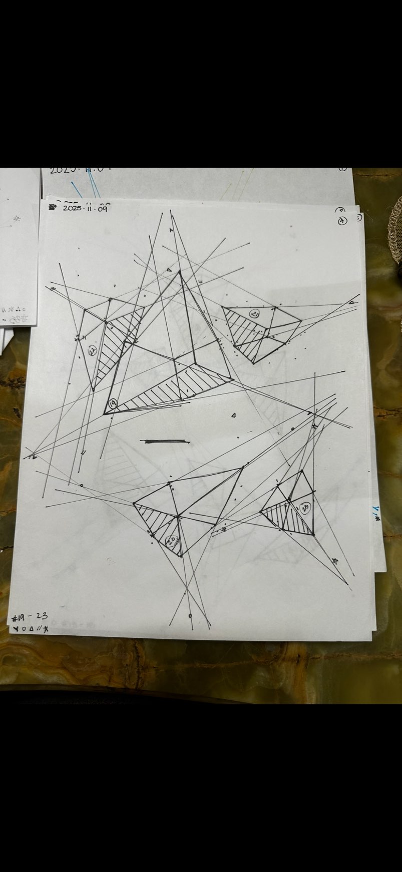 As an aside, I saw some boxes that appeared to be hatched on the wrong side when looking at the line extensions, like box 77. Hatching should indicate the side nearest the viewer. One way to check that is to make sure it touches two arms of the initial Y.