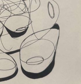 As to this latter point, you're doing quite well! I can see a lot of care and patience in how you plan out your marks, and their execution is consistently confident. Though I noticed a bit of stiffness to your ellipses in the sausages with contour lines exercise, here they're much more evenly shaped - suggesting that you may have simply been letting the stress of having them fit snugly within those sausages' silhouettes get to you. Always remember - once your pen touches the page to execute that mark, any concerns about accuracy need to be set aside.