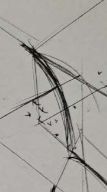 • Similarly to the textures, it introduces the problem of the intersection lines themselves, which students are not expected to understand how to apply successfully, but rather just make an attempt at - this will continue to be developed from lessons 3-7, and this exercise will return in the homework in lessons 6 and 7 for additional analysis, and advice where it is deemed to be necessary). In this regard, you are introducing new edges to define the relationships between these forms as they sit in space, which does show that you're thinking about how these forms relate to one another in space. That said, the way you're executing them, especially in cases like this does not at all align with the concepts relating to markmaking we introduced in Lesson 1. You should be drawing singular, individual marks based on specific planning - not loosely sketching your marks and then drawing back on top of them. Each mark is to be the representation of a clear decision you've made - that decision doesn't need to be correct, but it does need to be singular and clear.
