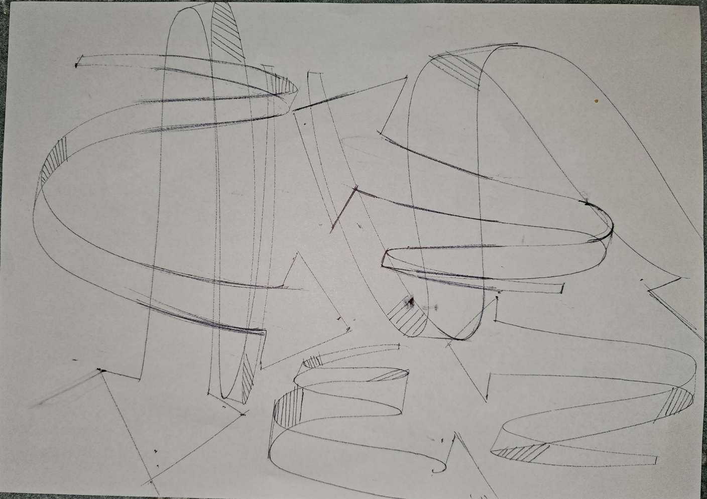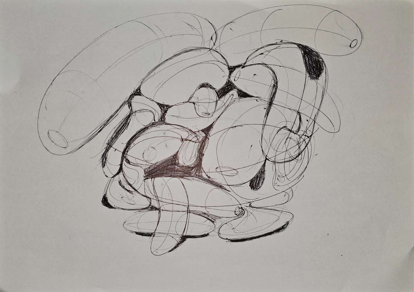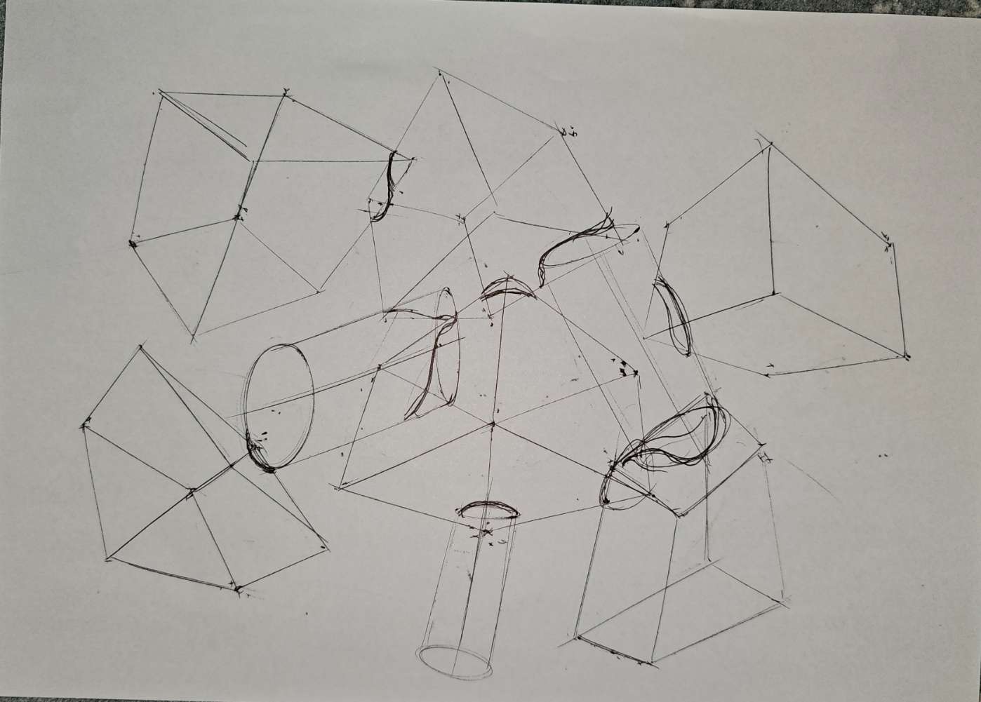 Lastly, your organic intersections do show that you're thinking about how these forms drape over one another under the influence of gravity, but as with the rest of your lesson work, the tendency towards rushing and approaching your work in a sloppy manner makes this rather difficult to provide useful feedback on.
