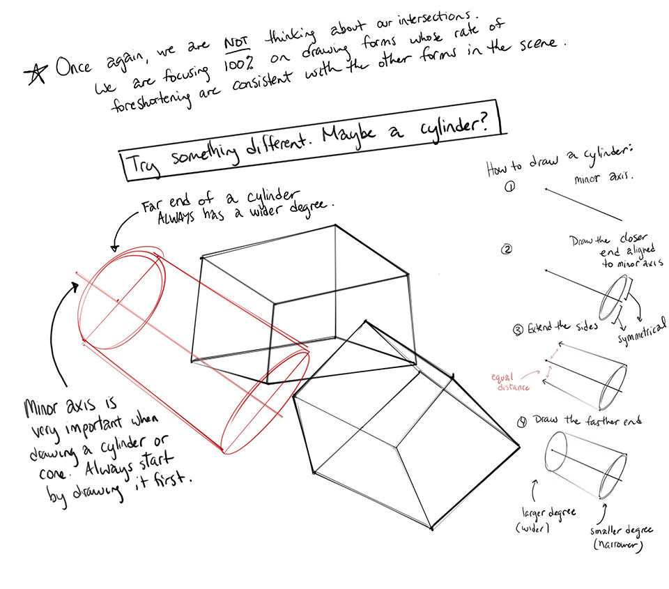 This is why form intersections are so critical, and why they become an extremely important tool for you - because it's your job to explain to your audience how the forms you've drawn relate to one another in the space you've created.