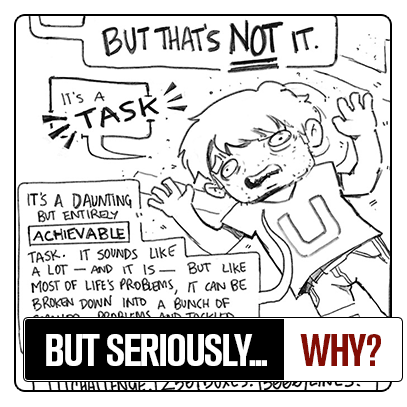 The totality of it may take weeks, or even months, depending on how much time you can throw at it each session, and how often you can sit down to chip away at it, but it's looking at the overall goal that we become overwhelmed. After all, climbing a mountain is a terrifying prospect. It gets a lot easier, however, if all you need to focus on is the very next step, and nothing more.