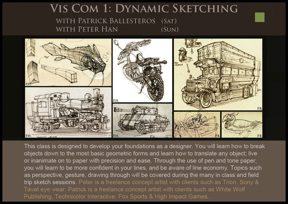 From the looks of it, you can still take Vis Com 1: Dynamic Sketching with Peter at Concept Design Academy in Pasadena, CA. It's a 10 week course, costs $770 USD. Deeeefinitely worth every cent, and actually you don't need a portfolio in order to get into the class. It's just first come first served. The other instructor, Patrick Ballesteros, is also fantastic.
